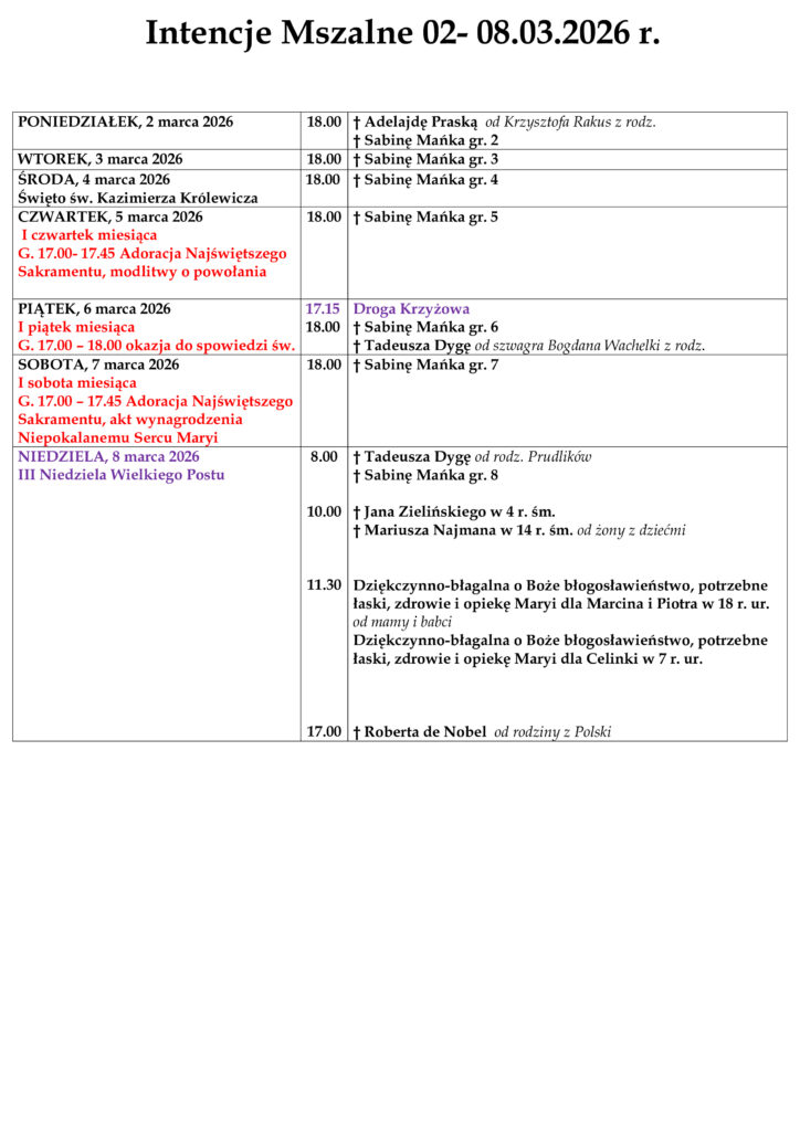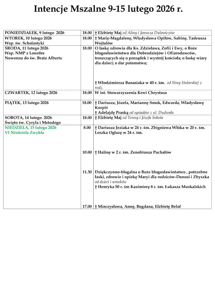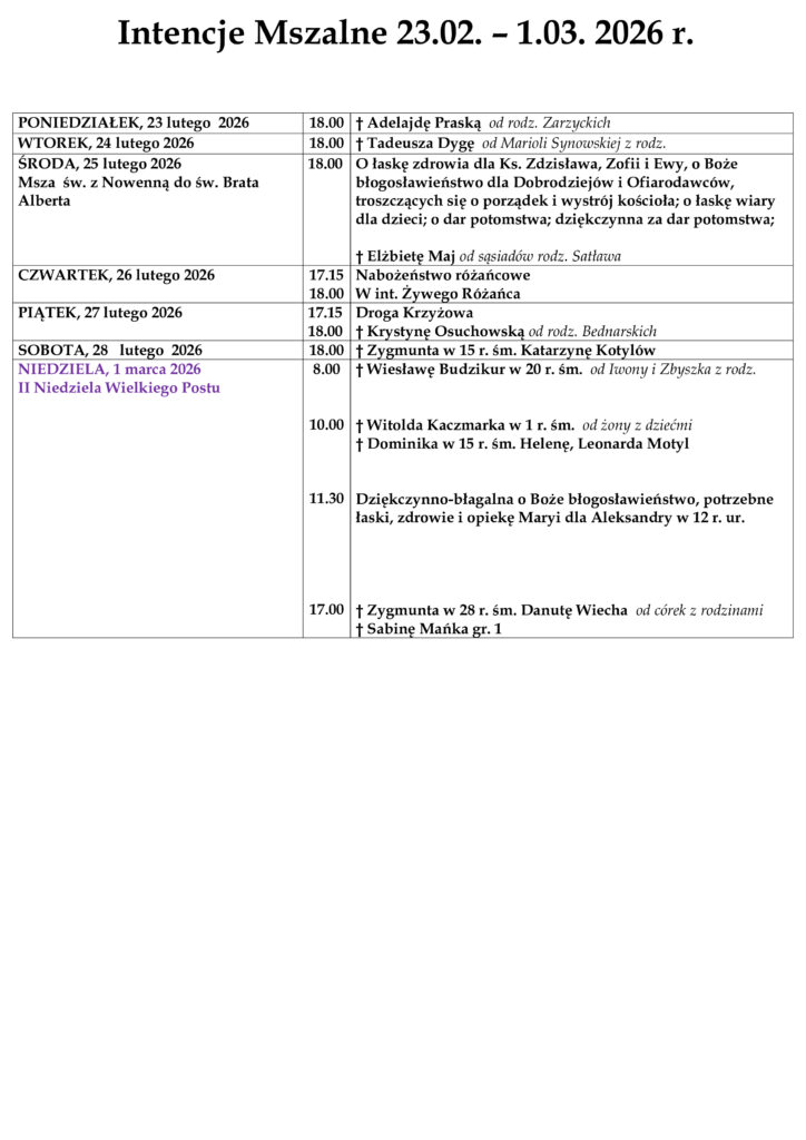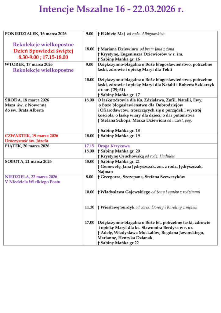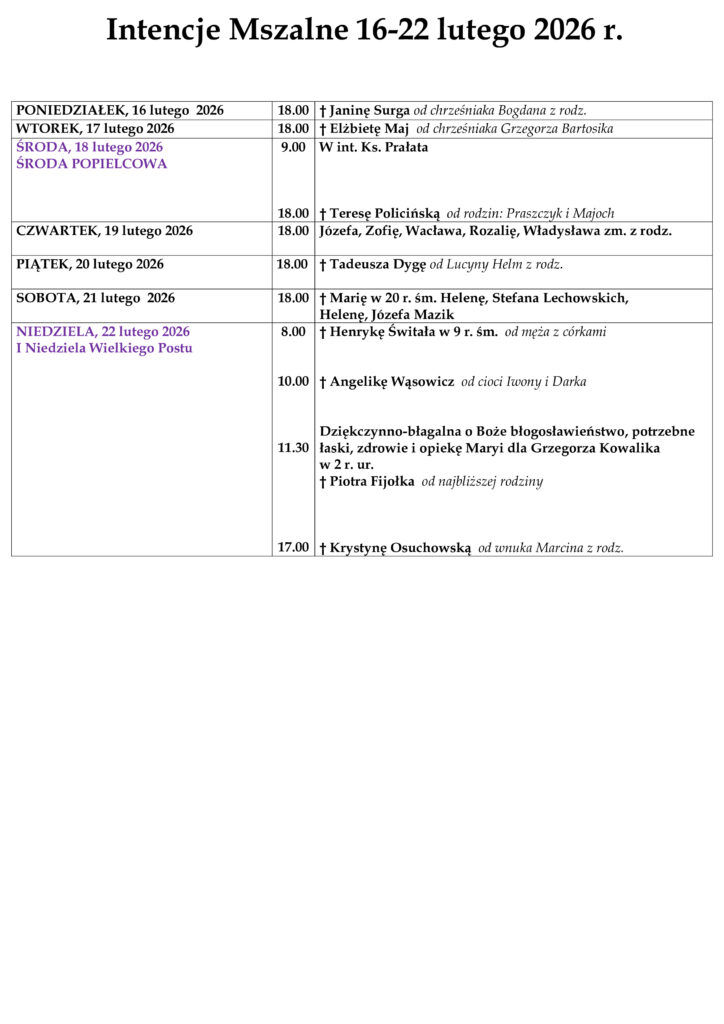 ARCHIWUM OGŁOSZEŃ I INTENCJI MSZALNYCH