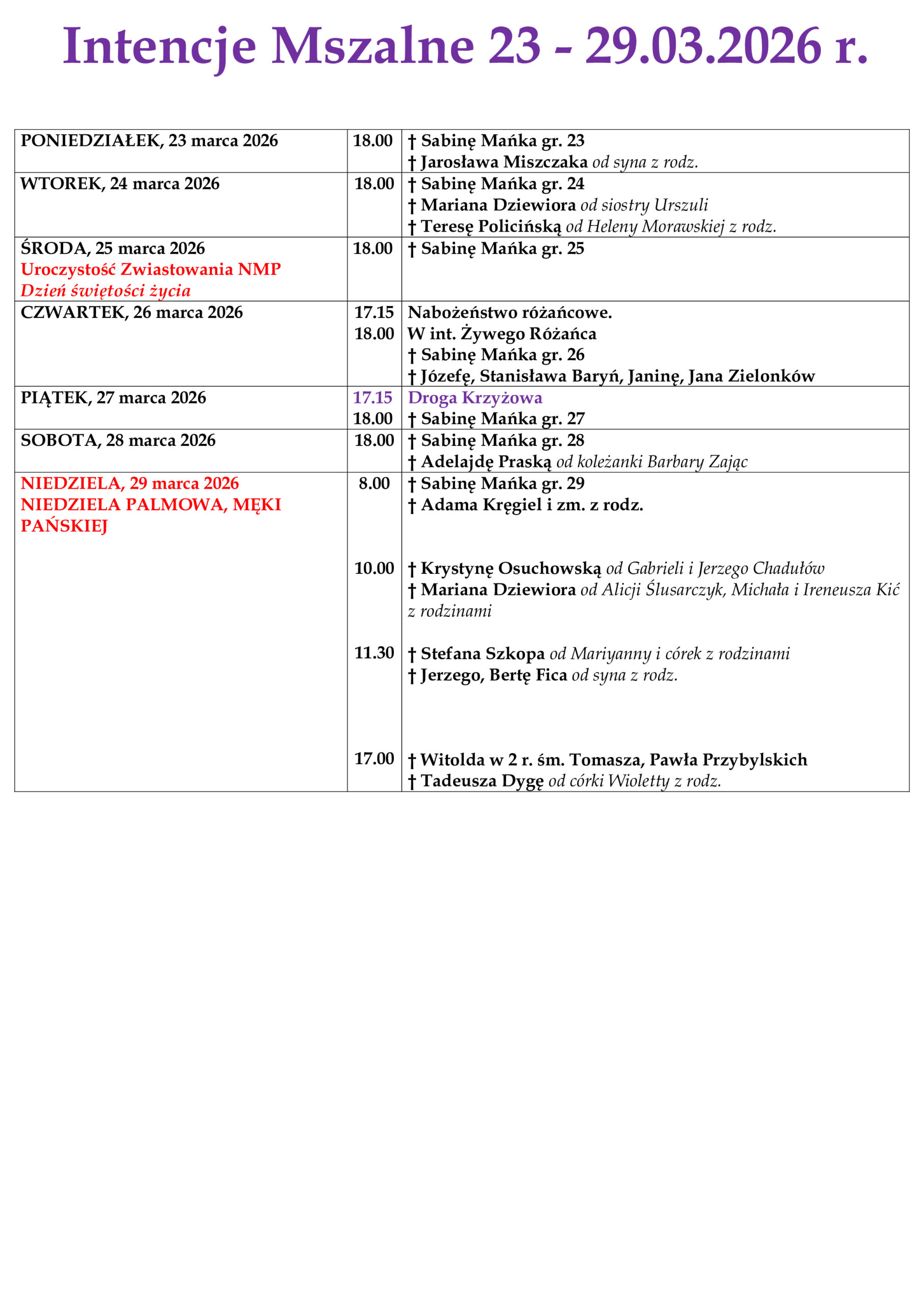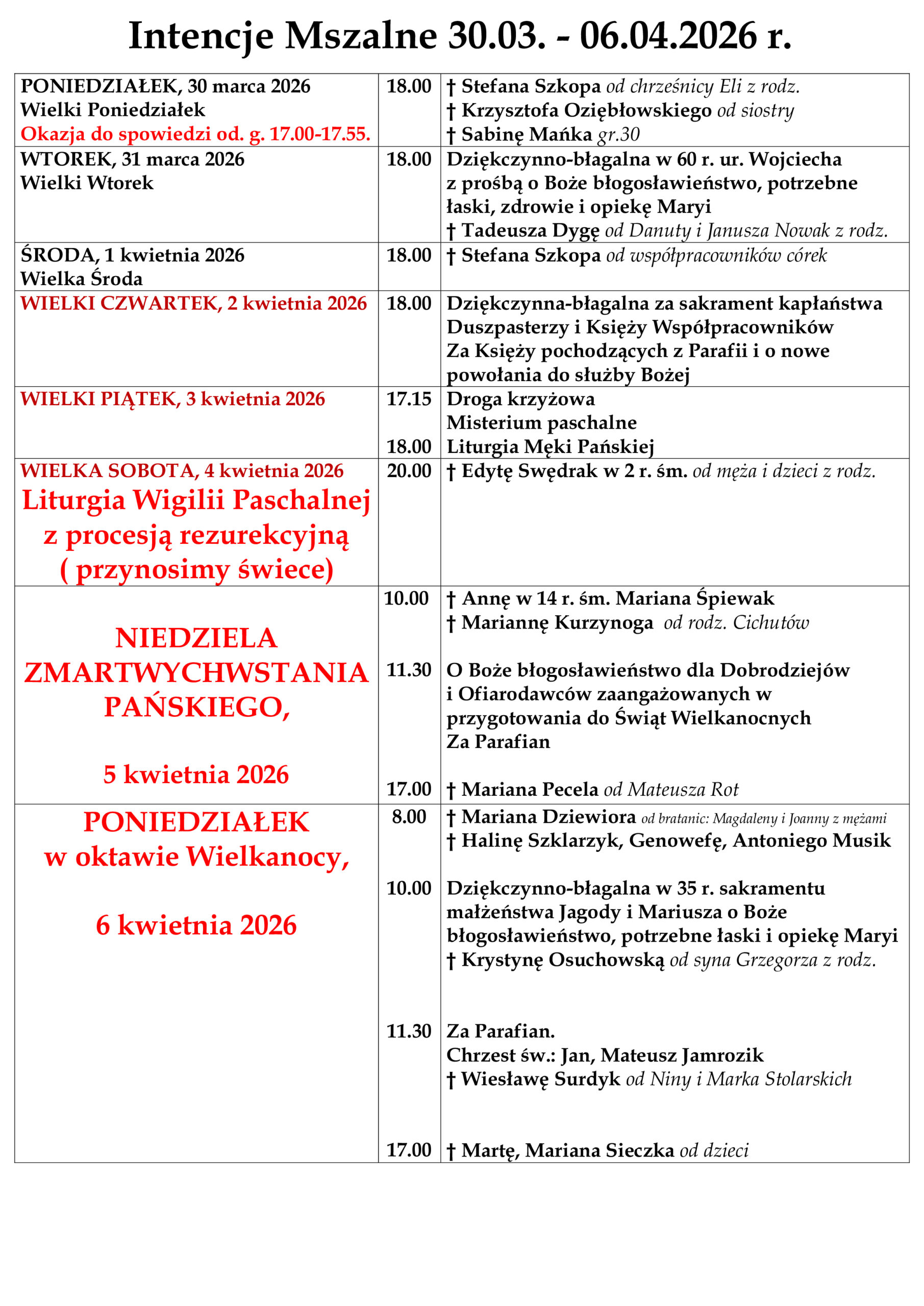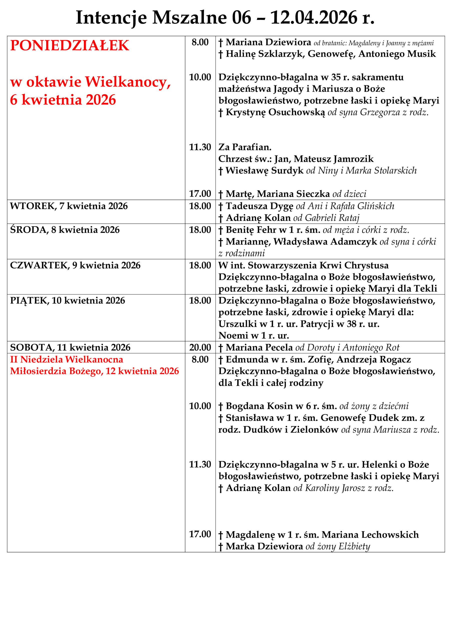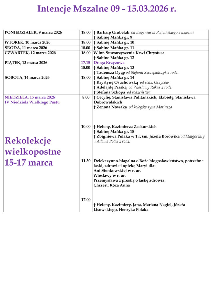 ARCHIWUM OGŁOSZEŃ I INTENCJI MSZALNYCH