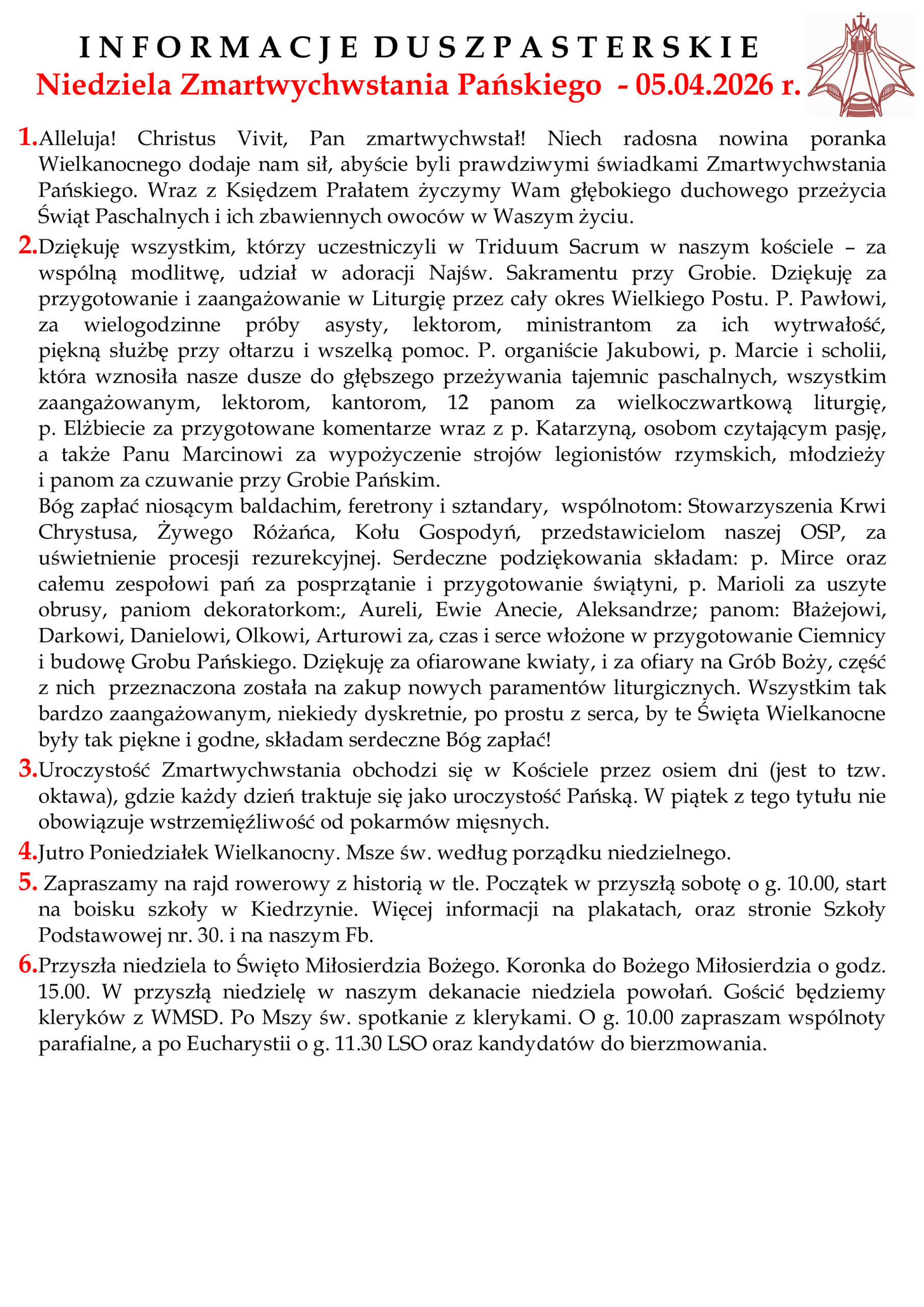 Informacje z Parafii